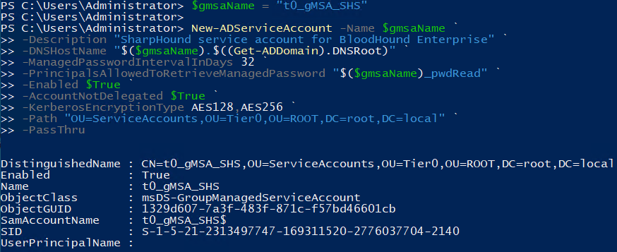 In the elevated PowerShell, test that the SharpHound server can retrieve the gMSA password by running: