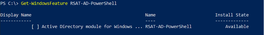 Check the status of the RSAT PowerShell module. On the SharpHound Enterprise server, open a PowerShell as an Administrator and run: