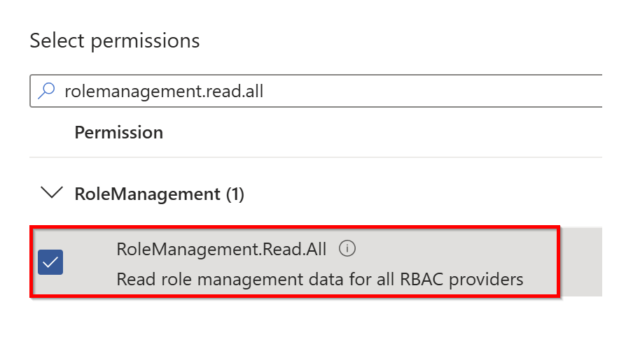 7. Search for the RoleManagement.Read.All permission and check the box next to it.