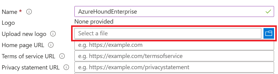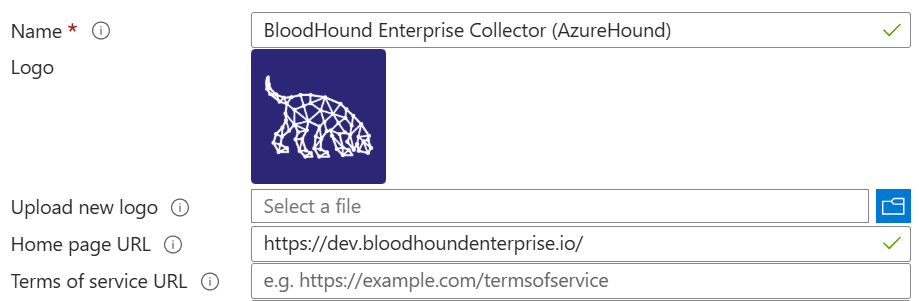 5. Type your BloodHound Enterprise tenant URL into the Home page URL field. This is for record keeping only.