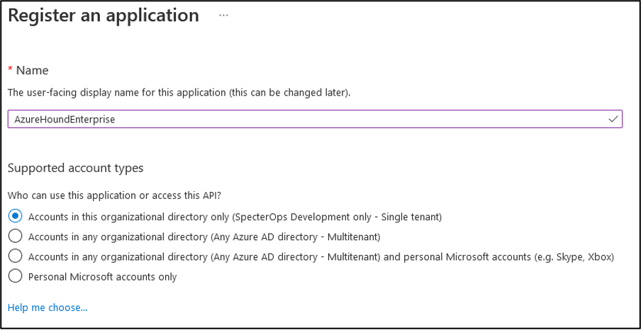 4. Provide a human-readable Name for the application, e.g., BloodHound Enterprise Collector (AzureHound).