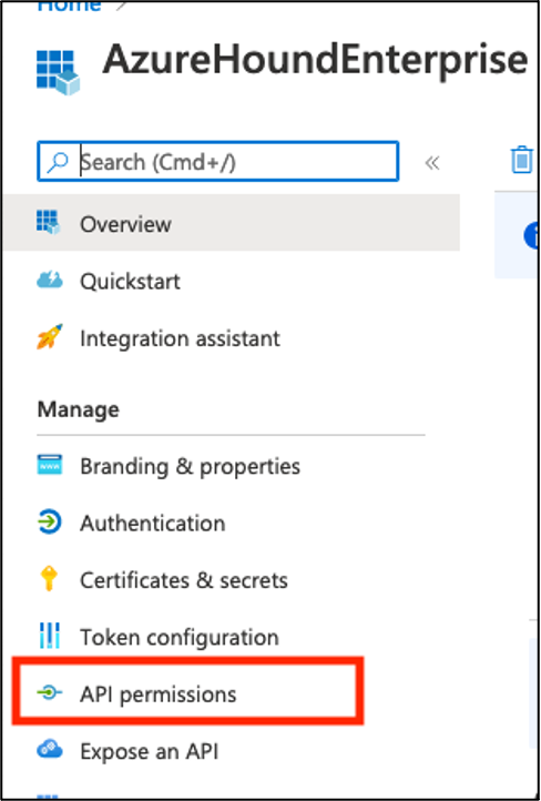 1. In the AzureHound application, select API Permissions.