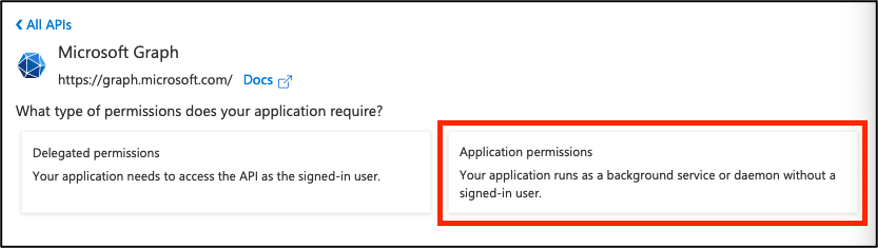 5. Select Application permissions.