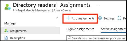 2. In the “Directory Readers” role, select Add assignments.
