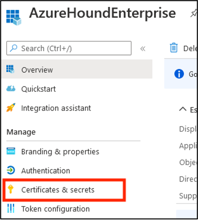 1. Select the Certificates & secrets section on the left.