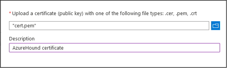 4. Locate the cert.pem file created during AzureHound setup (either on your own, or utilizing the instructions at AzureHound Enterprise Local Configuration).