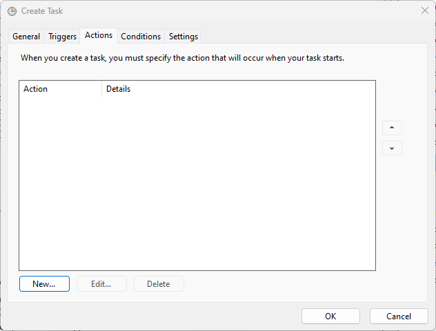 1. From the Action menu, select Create task… This will open a window to name and configure a new task.