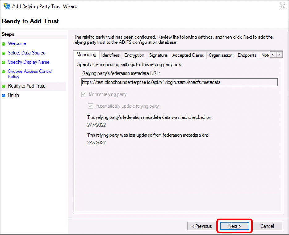 1. Insert the metadata URL based on your chosen name and click “Next.”