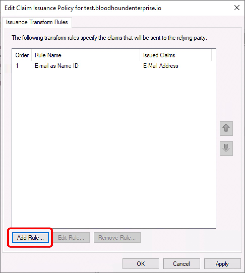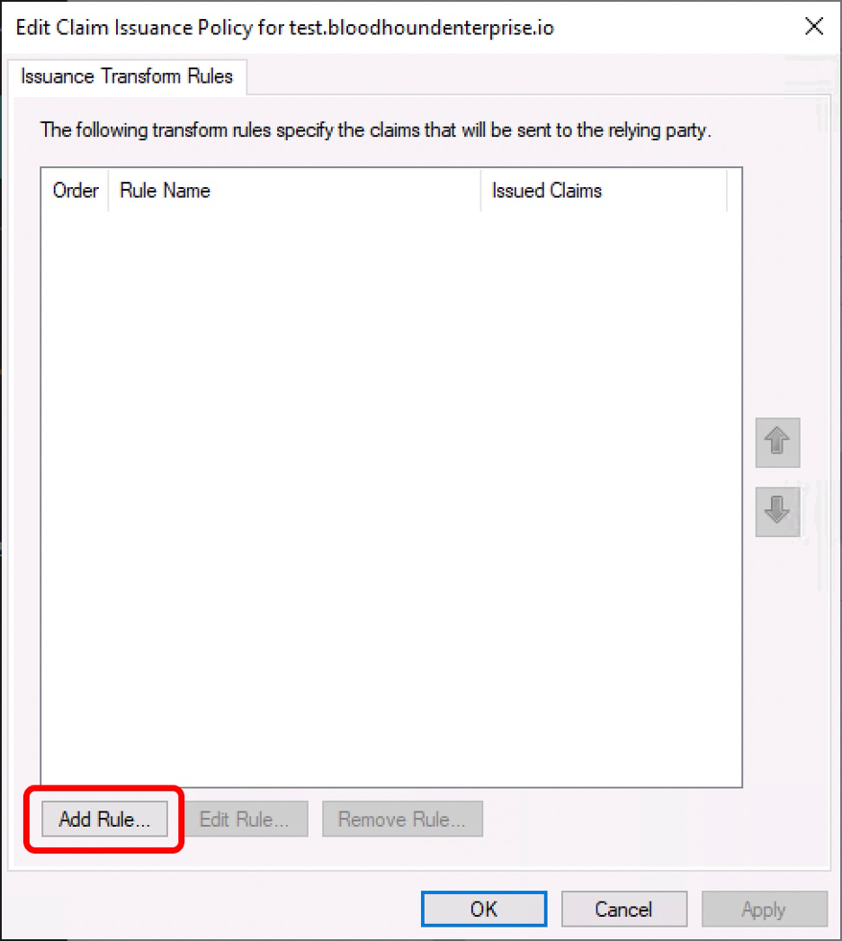 1. On the “Edit Claim Issuance Policy” dialog box, click “Add Rule…”.