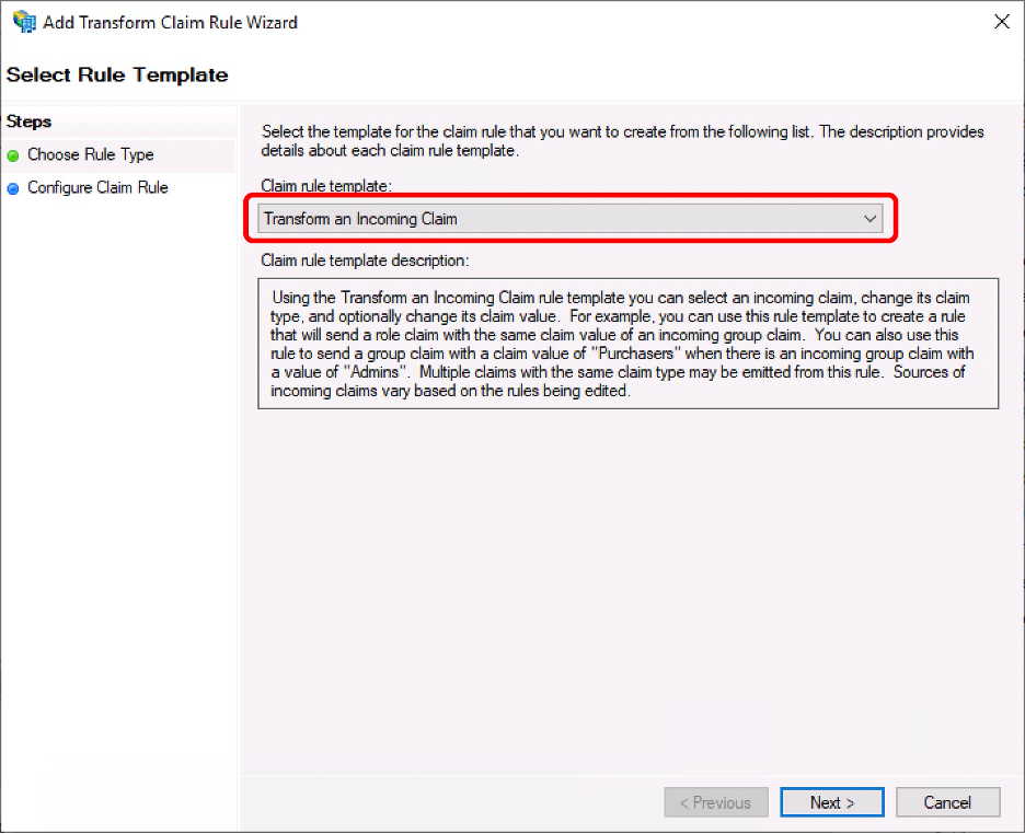 1. Choose “Transform and Incoming Claim” and click “Next”.